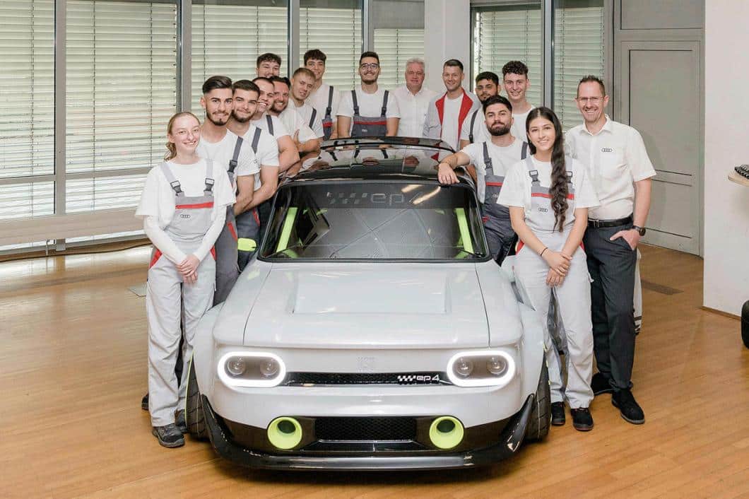 Pour marquer les 150 ans de l’usine Audi de Neckarsulm, un groupe de 12 apprentis chez Audi a imaginé a revisité la célèbre NSU Prinz en un concept électrique de 236 ch baptisé EP4.