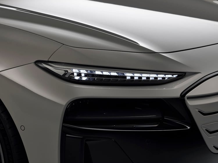 Trois ans après la présentation du concept, Audi dévoile enfin la nouvelle A6 100 % électrique dans sa version finale. Déjà disponible en versions berline et break, l’A6 e-tron conserve une apparence très proche du concept de 2021, ce qui explique l’impression de déjà-vu. À l’avant, elle présente une calandre Singleframe fermée de la couleur de la carrosserie, entourée d’un masque noir qui englobe les optiques principales, les prises d’air et les capteurs des aides à la conduite, pour mieux mettre en valeur la calandre et les fines optiques lumineuses.