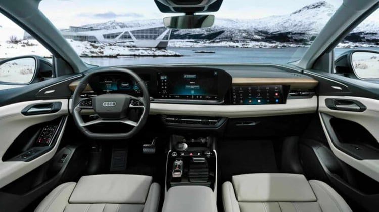 L’intérieur de l’Audi Q6 e-tron est un véritable écrin de luxe, marqué par l’excellence de la qualité des matériaux et de leur assemblage. La version SQ6 e-tron bénéficie d’une sellerie unique, alliant esthétique sportive à un confort immédiat, promettant un excellent maintien latéral et un confort d’assise optimisé. La finition en « soft wrap », s’étendant de la planche de bord aux panneaux de portes, utilise une texture douce similaire au daim, confectionnée à partir de matériaux recyclés, offrant une expérience sensorielle réussie. L’espace intérieur, à la fois spacieux et doté des dernières technologies, est dominé par le « Digital Stage » – une imposante dalle incurvée comprenant un tableau de bord numérique de 11,9 pouces et un écran multimédia de 14,5 pouces. À l’instar du Porsche Cayenne E-Hybrid, un écran supplémentaire de 10,9 pouces est disponible en option pour le passager avant, incluant un filtre de confidentialité pour ne pas distraire le conducteur.