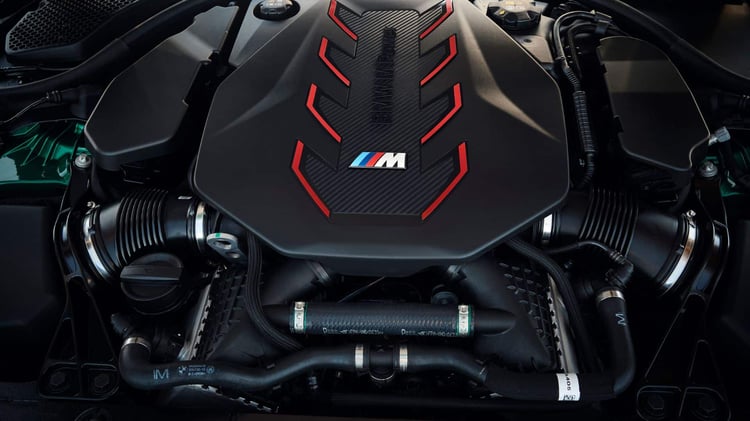 La M5 adopte une motorisation hybride rechargeable composée d’un V8 essence de 4,4 litres développant 585 ch, associé à un moteur électrique de 197 ch intégré à la boîte de vitesses à 8 rapports.