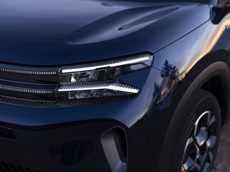 La face avant intègre des projecteurs LED, disponibles en version Citroën Matrix LED selon finition, ainsi qu’une signature lumineuse 3D à LED à l’arrière. Plusieurs jantes alliage sont proposées, en 19 pouces MOONDUST diamantées ou ZIRCONE, et jusqu’à 20 pouces OBSIDIAN selon version. Les packs Color et Design permettent également de personnaliser les éléments extérieurs.