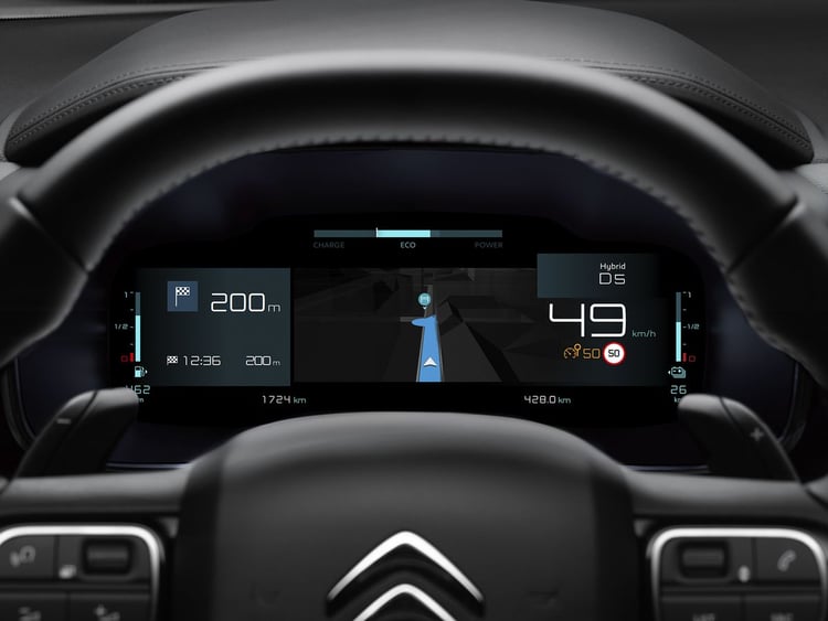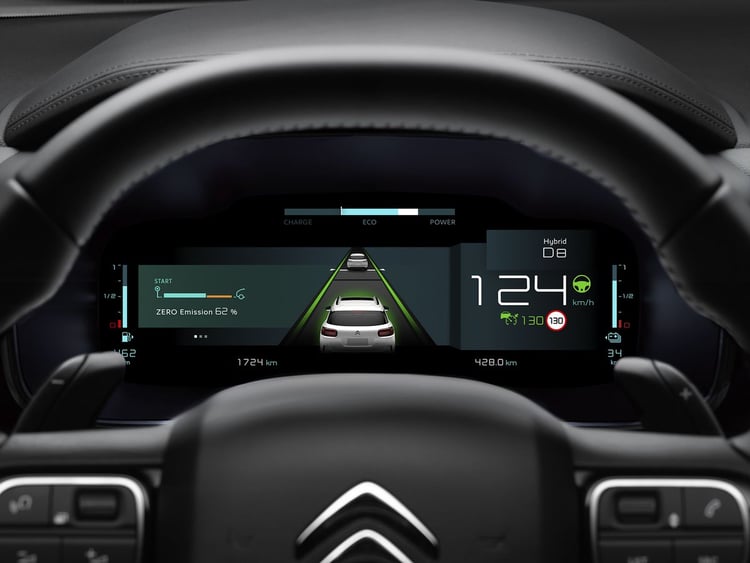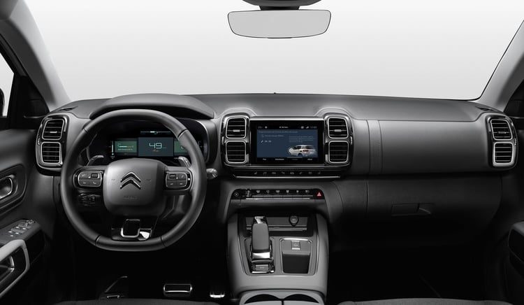 L’instrumentation comprend un combiné numérique 10 pouces personnalisable et un écran central vertical tactile de 13 pouces compatible Apple CarPlay et Android Auto sans fil. Le Citroën C5 Aircross hybride rechargeable peut également recevoir la navigation 3D connectée, l’affichage tête haute étendu, ainsi que de nombreux systèmes d’aide à la conduite, dont le Pack Drive Assist 2.0 avec assistance semi-automatique au changement de voie et surveillance d’angle mort longue distance