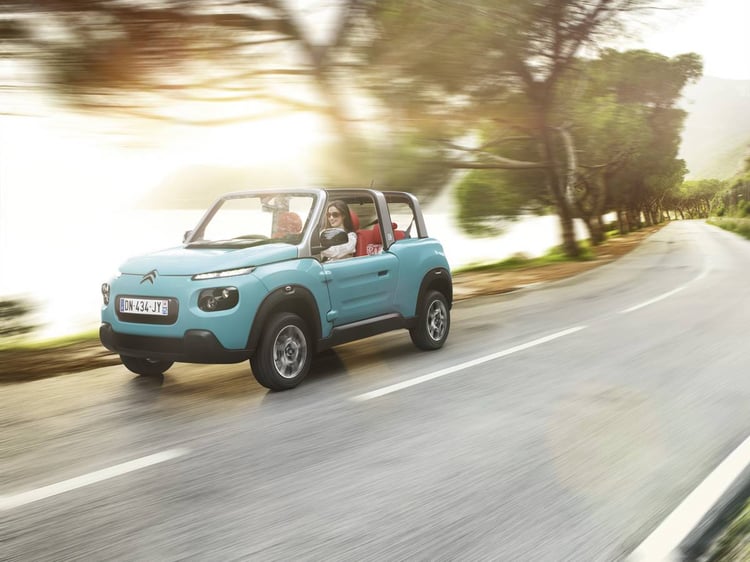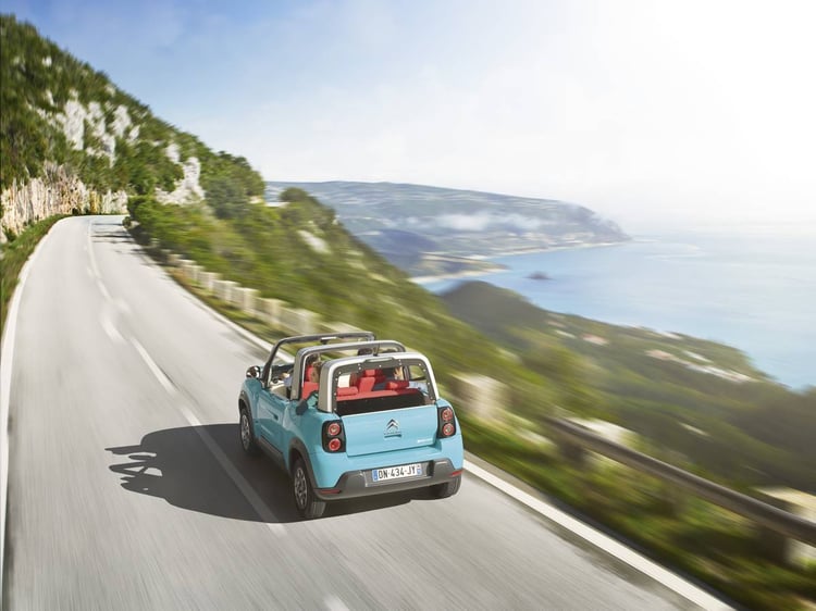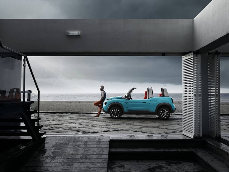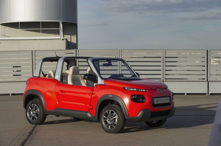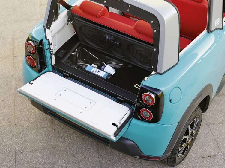 Reprenant le look de la mythique Méhari, ce cabriolet de 3,81 m offre quatre places et une banquette arrière rabattable. La voiture est également découvrable grâce à une capote amovible dotée d’un système de fermeture latéral.