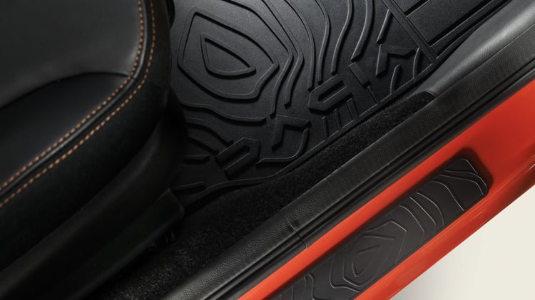 Ces ventilations s’insèrent dans un panneau coloré, dont la couleur change selon le niveau d’équipement choisi (gris, rouge, ou kaki). Pour égayer l’intérieur, plusieurs composants adoptent un coloris blanc, comme le cadre du (nouveau) sélecteur de vitesses ou le dessus du bloc d’instruments, qui abrite un écran de 7 pouces disponible sur tous les modèles. L’écran tactile de 10 pouces est standard sur le modèle haut de gamme Extreme, tandis que les autres versions se contentent du système Media Control, qui utilise un smartphone fixé sur un support dédié pour les fonctions de radio et de navigation, contrôlables depuis le volant. Ce dernier, d’ailleurs, est une nouveauté et peut maintenant être ajusté en hauteur.