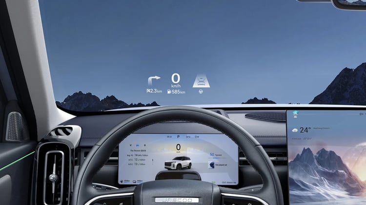 Le Jaecoo 7 SHS-P intègre un écran tactile central de 14,8 pouces compatible Android Auto et CarPlay sans fil. La recharge smartphone par induction peut atteindre 50 W selon la finition. Un affichage tête haute est disponible, ainsi qu’un combiné d’instrumentation personnalisable. Les versions proposent six ou huit haut-parleurs.