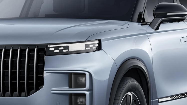 Le Jaecoo 7 SHS-P adopte une silhouette marquée par des lignes rectilignes et une structure angulaire, avec une face avant dominée par une large calandre hexagonale et des projecteurs LED segmentés. Le profil présente une ligne de caisse continue reliant l’avant à l’arrière ainsi que des poignées de porte affleurantes électriques. Le modèle mesure 4 500 mm de long, 1 865 mm de large et 1 670 mm de haut, pour un empattement de 2 672 mm. Le volume de coffre atteint 500 litres, extensible à 1 265 litres une fois la banquette rabattue.