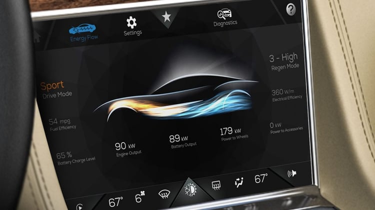 De technologie lithium-ion, la batterie de la Karma Revero cumule 21.4 kWh de densité énergétique et autorise jusqu’à 80 km d’autonomie en une seule charge. Avec l’apport du générateur thermique, l’autonomie totale avoisine les 500 kilomètres.