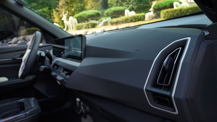 Le poste de conduite intègre trois écrans : un combiné d’instrumentation de 12,3 pouces, un écran central d’infodivertissement de 12,3 pouces et un écran dédié à la climatisation de 5,3 pouces. Sept airbags équipent le véhicule de série. La capacité de chargement s’établit à 566 litres derrière la banquette arrière, extensible à 1 650 litres sièges rabattus. Un coffre avant de 44,4 litres complète les espaces de rangement.