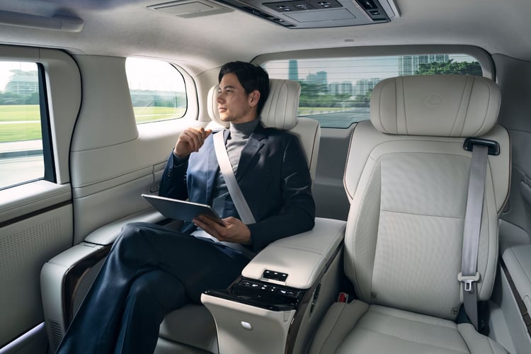 Lexus a apporté un grand soin au design des deux véritables fauteuils arrière pour améliorer la posture de leurs occupants. Ces sièges peuvent être inclinés à l’horizontale pour un confort optimal. Les passagers arrière disposent d’une télécommande similaire à un smartphone qui leur permet de contrôler le système audio, la climatisation, les sièges, l’éclairage et les stores. Ils peuvent également utiliser la commande vocale pour piloter certaines fonctions, ce qui représente une première dans la catégorie des sièges arrière.