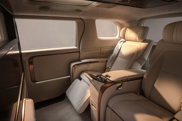 Il y a deux configurations disponibles pour le LM. La première est une version 7 places, comprenant deux sièges VIP au centre et une banquette trois places dans le coffre. La seconde est une version 4 places avec deux places à l’arrière, qui offrent un confort de première classe.