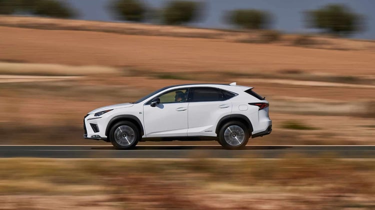 Le Lexus NX utilise la plateforme TNGA-K déjà présente sur les modèles Toyota RAV4 ou Suzuki Across. Comme ses cousins japonais, il est équipé du même ensemble mécanique : un moteur thermique 2,5 litres atmosphérique de 190 ch avec un rendement exceptionnel de 41 %, et deux moteurs électriques, l’un à l’avant directement connecté au système de roulement, l’autre placé à l’arrière.