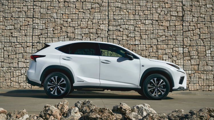 Le SUV Lexus NX mesure 4,66m de long sur 1,87m de large et 1,66m de haut, son empattement s’étend sur 2,69m. Disposant de 5 places assises, le NX hybride rechargeable affiche 1990 kg à vide sur la balance, pour un poids total autorisé en charge de 2540 kg.