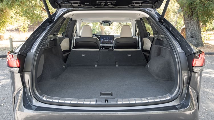 À l’arrière, les passagers bénéficient d’un excellent confort avec un plancher plat et trois sièges indépendants. Cependant, il est à noter que les individus mesurant plus de 1,85 m pourraient trouver l’espace pour la tête limité, comme en témoigne l’expérience d’un journaliste sur place, gêné par le plafond. Le véhicule est équipé d’une multitude de réglages électriques, d’un toit panoramique et de sièges arrière fractionnables en configuration 40/20/40, assurant une grande praticité. Le seuil de chargement du coffre du Lexus RX 450h+ a été abaissé de 30 mm pour faciliter le chargement, tandis que le nouveau design du hayon procure 50 mm supplémentaires de profondeur, ce qui s’avère idéal pour transporter des objets longs.