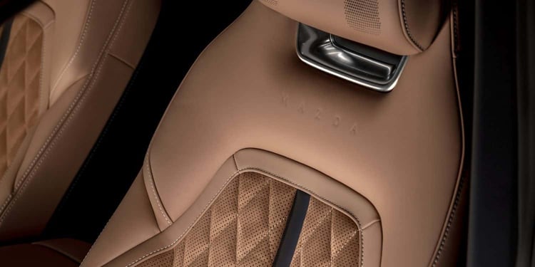 Mazda vise un positionnement premium avec une attention particulière aux détails. La finition haut de gamme Takumi Plus propose des matériaux raffinés, comme le cuir nappa et la suédine. Le véhicule peut également être équipé d’un système audio SonyPRO à 14 haut-parleurs.