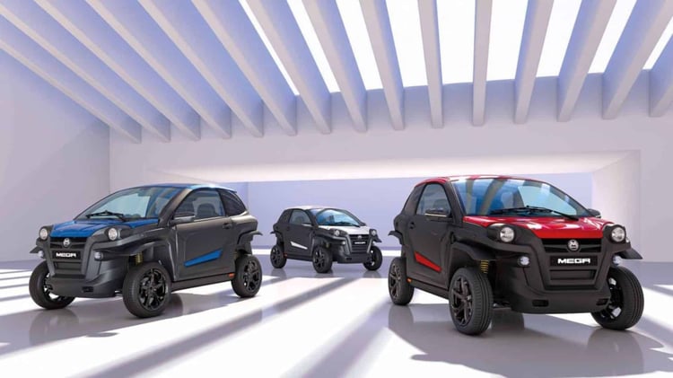 Le Mega e Scouty est un quadricycle léger (L6e-B) électrique équipé d’une batterie de 7,44 kWh autorisant une autonomie de plus de 100 km.