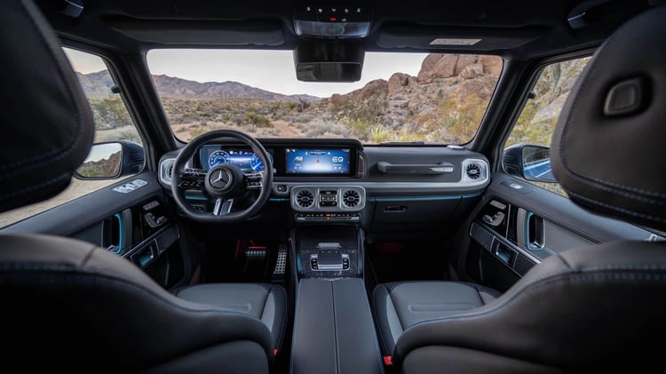 Pour Mercedes, il était crucial que ce Classe G électrique conserve ses capacités de franchissement. Grâce à la gestion indépendante de ses quatre moteurs, le véhicule excelle dans les terrains difficiles. Sa fiche technique comprend également la fonction innovante « G-Turn », qui permet au véhicule de pivoter sur lui-même. Le « G-Steering » est également de la partie pour réduire le rayon de braquage. Les amateurs de tout-terrain peuvent être tranquilles : la batterie est sécurisée par une plaque antichocs de 26 mm d’épaisseur, renforcée de carbone.