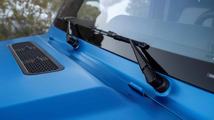 Le G 580 EQ n’est pas simplement un Classe G équipé d’un moteur électrique, mais un Classe G équipé de quatre moteurs électriques ! Il y a effectivement un moteur par roue, chacun étant géré de manière indépendante. Chaque moteur délivre une puissance de 108 kW, pour une puissance totale combinée de 432 kW, soit 587 chevaux. Le couple peut monter jusqu’à 1164 Nm, permettant à ce 4×4 d’atteindre le 0 à 100 km/h en 4,7 secondes, ce qui est remarquable étant donné son poids considérable de 3 tonnes.