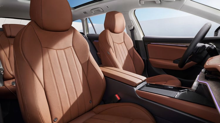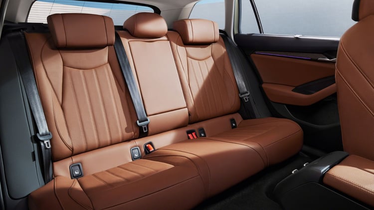 À l’intérieur, la transformation est plus significative. La Superb précédente arborait en effet un tableau de bord au style quelque peu désuet, caractérisé par un écran positionné assez bas sur la console centrale. La nouvelle configuration rompt avec le passé, adoptant un agencement plus horizontal. L’écran est désormais positionné au-dessus des bouches d’aération centrales et peut mesurer jusqu’à 12,9 pouces. En bas, de nouvelles commandes circulaires font leur apparition, chacune dotée d’un petit écran. La commande située au centre est personnalisable pour s’adapter aux préférences de l’utilisateur.