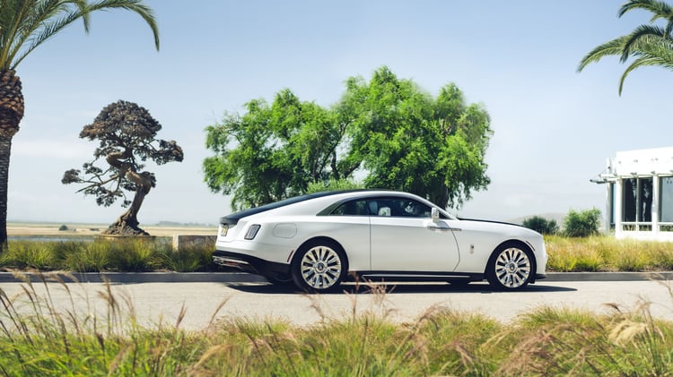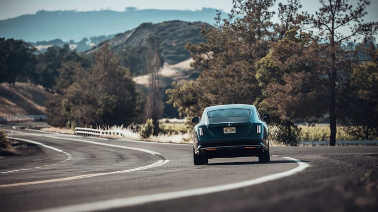 Bien que la Spectre conserve la silhouette caractéristique d’une Rolls, elle apporte une touche de fraîcheur et de modernité au design traditionnel de la marque. La calandre, la plus large jamais installée sur une Rolls, est notable, mais elle demeure d’une hauteur raisonnable. La signature lumineuse est distinctive, composée d’une fine bande en hauteur, ajoutant une élégance moderne. À l’arrière également, la Spectre n’hésite pas à innover avec une signature lumineuse contemporaine, reflétant une approche audacieuse du design.