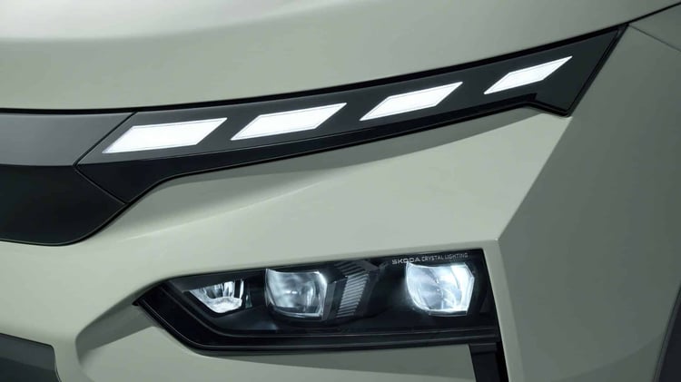 Avec ses 4,48 mètres de longueur, le Skoda Elroq se positionne entre le Renault Scenic e-Tech (4,47 m) et le Peugeot e-3008 (4,54 m). Plus compact que son grand frère l’Enyaq (4,65 m), il affiche toutefois un lien évident à l’arrière. À l’avant, la signature Modern Solid, déjà annoncée par le concept Skoda Vision 7S, fait ses débuts avec une calandre pleine, des phares LED minimalistes et un capot arborant le nom de la marque en toutes lettres. Les optiques principales, quant à elles, sont intégrées dans le bouclier. La version d’entrée de gamme est équipée de phares classiques, tandis que les finitions supérieures bénéficient de la technologie Matrix LED avec des feux de route matriciels composés de 36 segments.