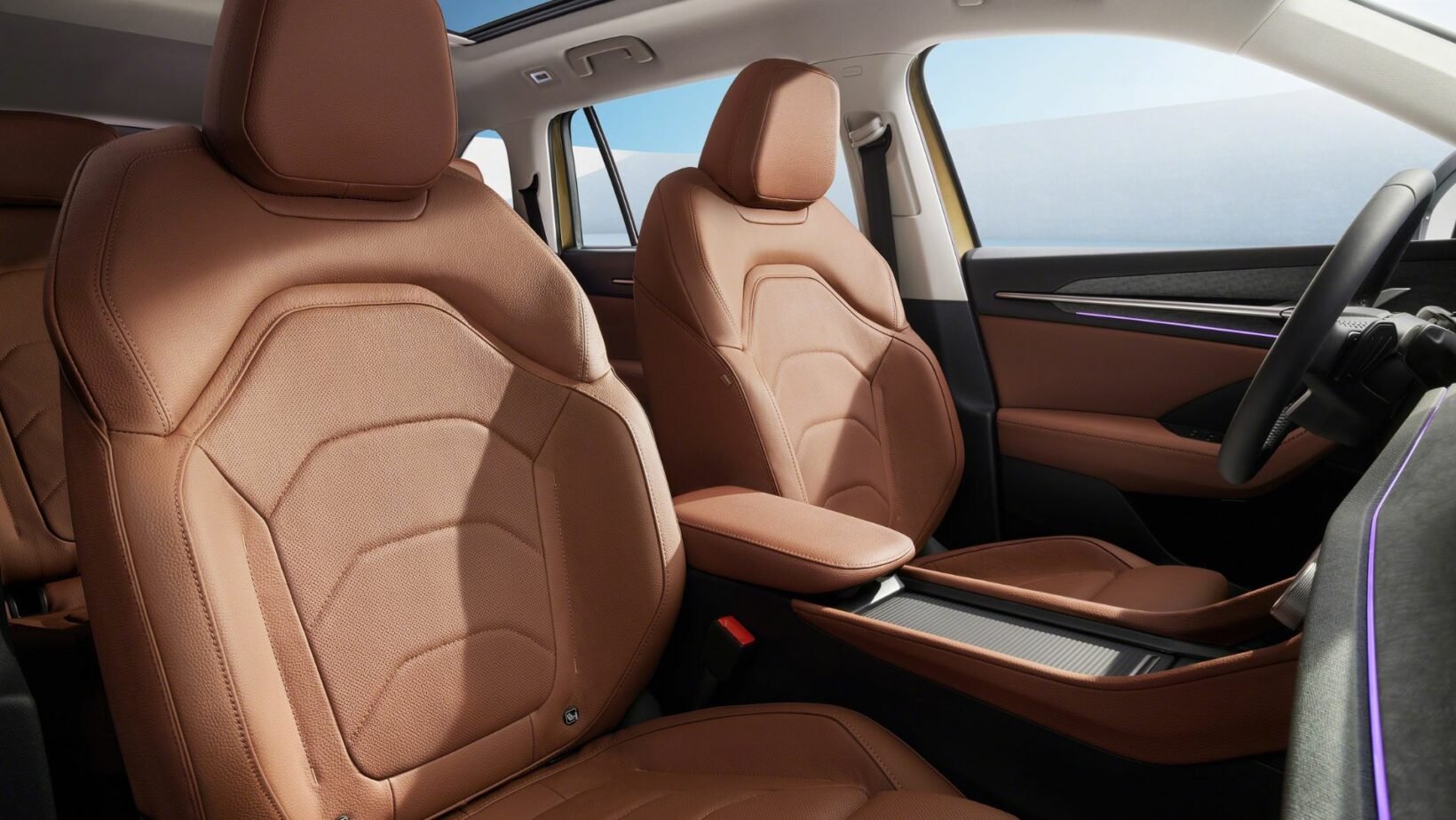 Le véhicule est équipé d’un écran tactile imposant de 13 pouces. Sous cet écran, on trouve des boutons physiques pour un accès rapide à certaines fonctionnalités. La commande centrale est personnalisable, permettant au conducteur de sélectionner un réglage préféré. Le sélecteur de vitesses est situé près du volant, libérant ainsi de l’espace central pour des compartiments de rangement. Skoda a également intégré une « Phone Box » qui charge deux smartphones simultanément par induction, tout en refroidissant cet espace.