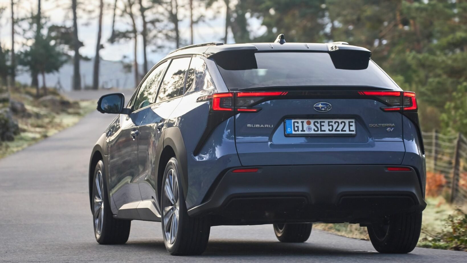 Le design du Subaru Solterra présente quelques différences subtiles par rapport au Toyota BZ4X. Parmi celles-ci, on retrouve une calandre hexagonale, une signature lumineuse distinctive, ainsi que des jantes spécifiques. À l’arrière, les feux LED arborent la forme en « C », caractéristique des véhicules Subaru.