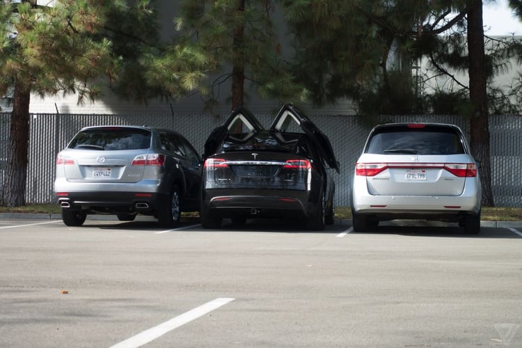 La Model X peut accueillir 7 passagers, et se dote pour cela d’un cinématique d’ouverture de porte inédite. Les portes s’ouvrent vers le haut, en se repliant afin de ne pas prendre trop d’espace latéral. C’est l’une des particularités de la voiture qui fait le plus parler d’elle !