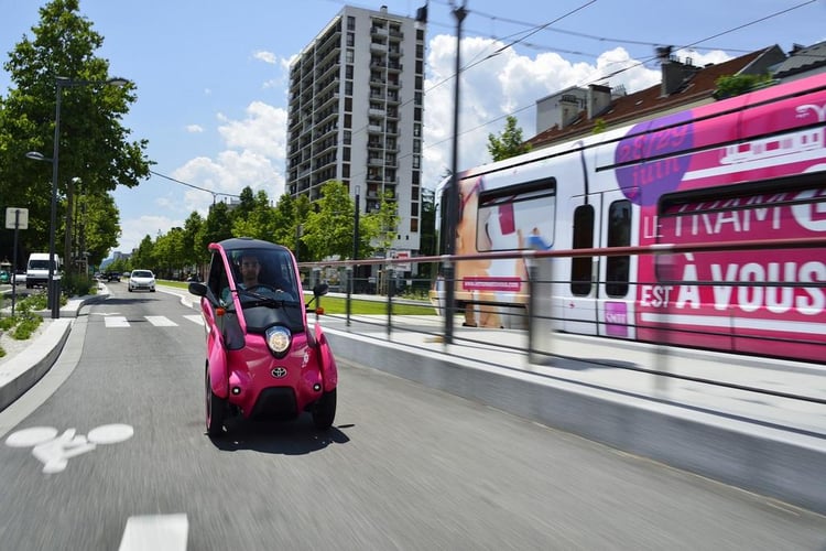 Dévoilé en 2013 lors du salon de l’automobile de Genève, le Toyota i-Road est actuellement expérimenté à Grenoble dans le cadre du dispositif d’autopartage Citélib’ by Ha:Mo.