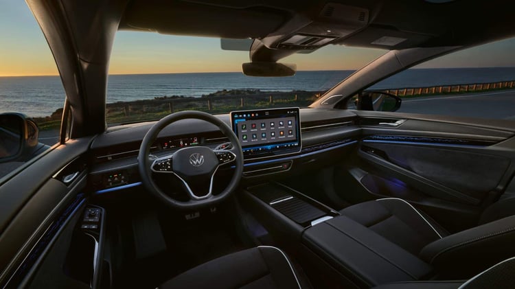 La ID.7 Tourer se distingue par ses éléments lumineux avant-gardistes, notamment la signature lumineuse IQ.Light avec un bandeau lumineux sur la calandre, un logo éclairé, et des phares LED matriciels offrant une excellente visibilité de nuit. À l’arrière, un bandeau LED s’étend sur toute la largeur du véhicule, renforcé par des options telles que des feux à LED 3D, des feux de stop à balayage, et des clignotants séquentiels. Le volume du coffre est généreux, passant à 605 litres avec les sièges arrière en position verticale et s’étendant à 1 714 litres une fois ces sièges rabattus, malgré un plancher qui n’est pas parfaitement plat.