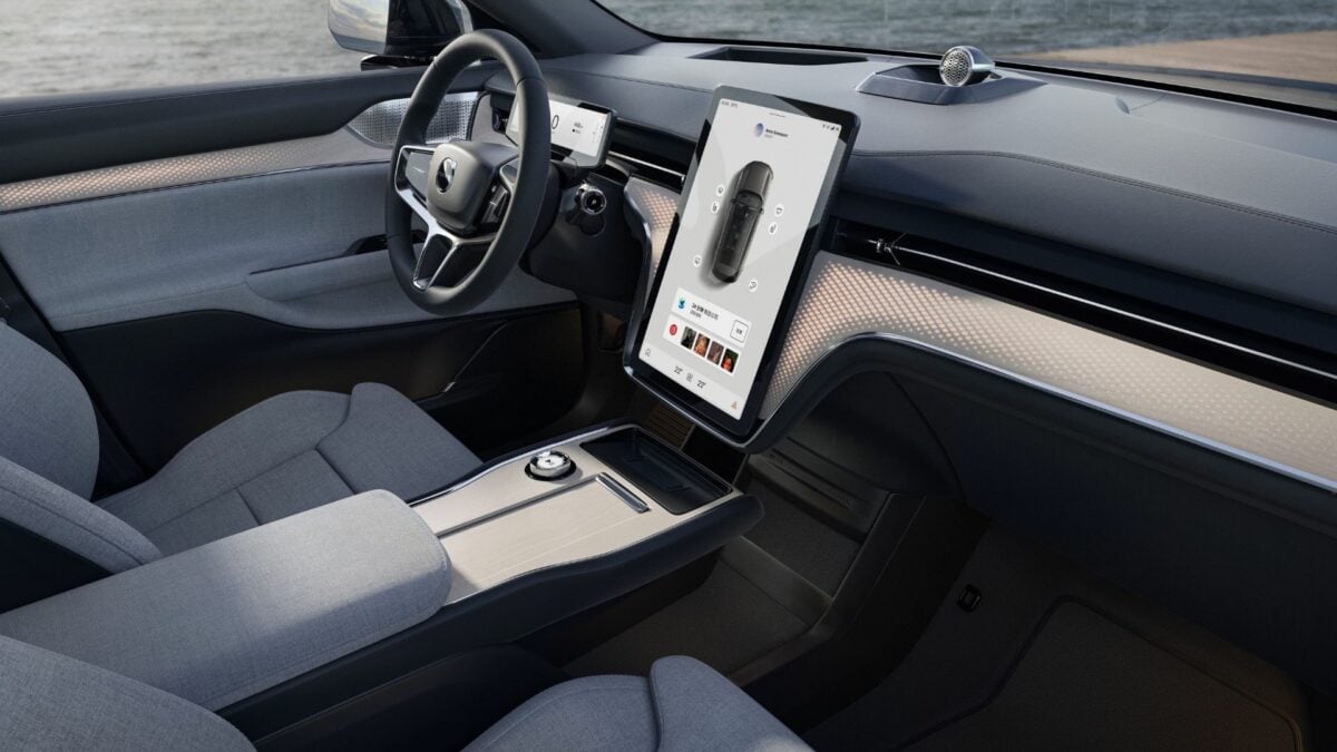 L’intérieur du Volvo EX90 se distingue par un tableau de bord minimaliste, avec un écran central de 14,9 pouces. Malheureusement, il n’y a pas de commandes physiques, mais l’interface utilisateur a été optimisée pour pallier ce manque. Des commandes vocales très sophistiquées et les fonctions essentielles (y compris la climatisation) sont accessibles via une barre fixe, un choix moderne et tendance.